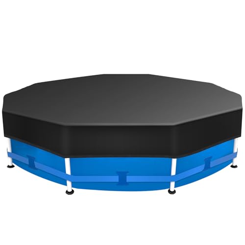 Sekey Bache Piscine Ronde 305cm–Spéciale Piscines à Cadre Métallique Rond |avec Lanières Ajustables et Bande Auto-agrippante |Antivent et Anti-Poussière |Toile Dense Résistante aux Déchirements |Noir