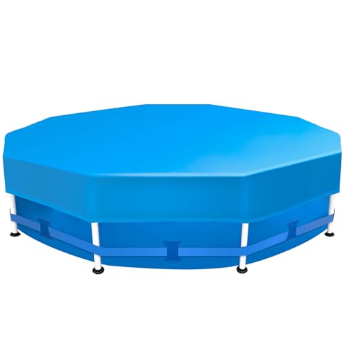 Sekey Bache Piscine Ronde 305cm–Spéciale Piscines à Cadre Métallique Rond |avec Lanières Ajustables et Bande Auto-agrippante |Antivent et Anti-Poussière |Toile Dense Résistante aux Déchirements |Bleu