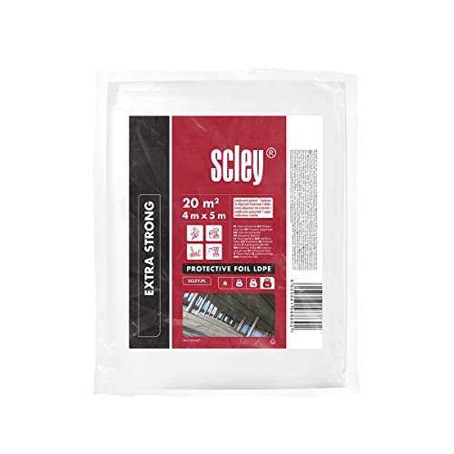 Scley Bâche de protection peinture, 4 unités de film en plastique, Bâche transparente largeur 4m, longueur 5m, 20m2, bâche de protection PE-LD, épaisseur de matériau 5my, A0410-500405