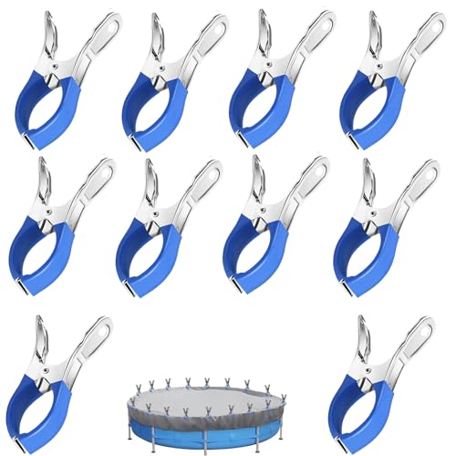 Lot de 10 Pinces en métal pour Piscine Hors Sol - Pince Bache Piscine avec Forte Force de Serrage, Pince à Ressort pour bache Sol Piscine Protection Contre Le Vent piscines hors sol à bords durs