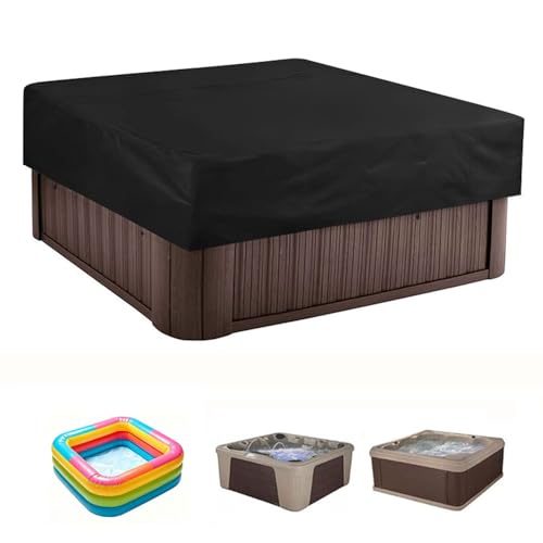 Couvercle du Spa Solaire Extérieur,Bâche Protection Piscine Thermique Carrée Oxford 210D Bain à Remous Étanche à la poussière et aux UV Coupe Vent avec Cordon de Serrage(Black,228 * 228 * 30CM)