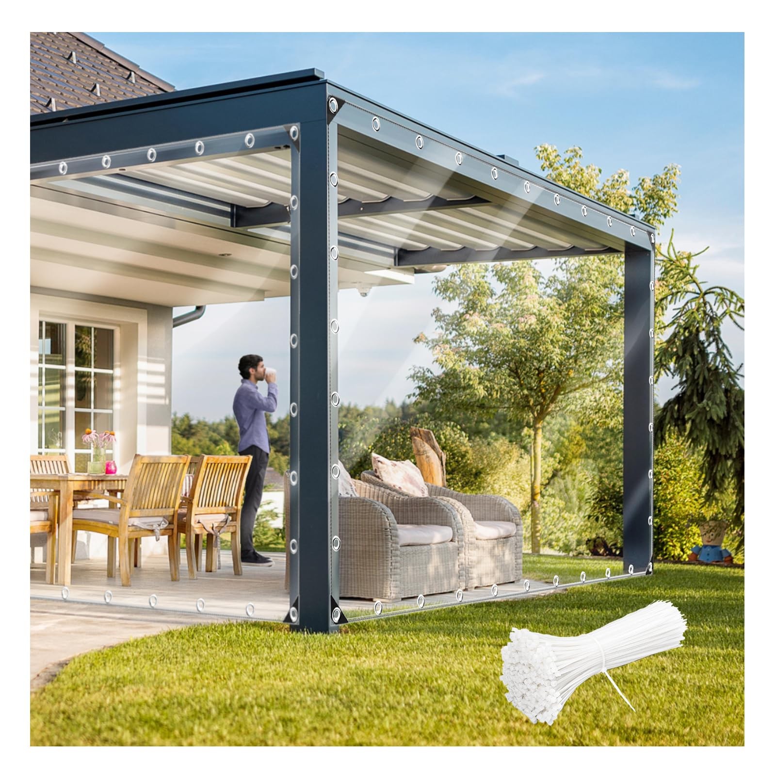 Bâche Transparente avec Oeillet,400 g/m² Lourd Bâche de Protection 0.35mm,2.6x2.5m Panneaux Latéraux Imperméable pour Couverture Meubles de Jardin,Pergola,Cabanon,Porche,Bassin