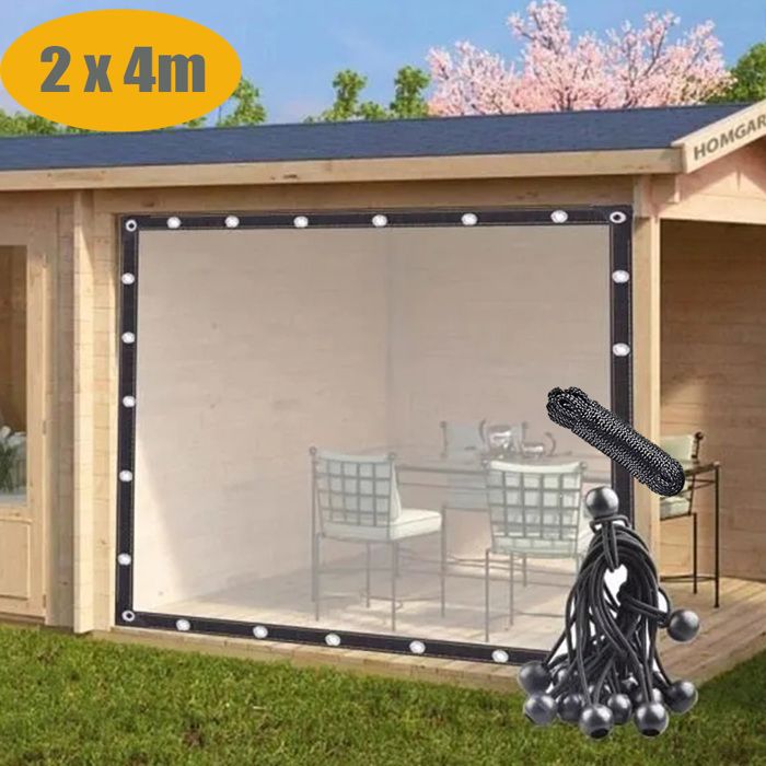 Bâche transparente très résistante avec oeillet, imperméable en PVC de 0,5 mm pour extérieur, abri auto, véranda, rideau anti-pluie