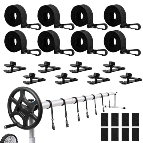 Gbformat Lot de 8 Sangles de Maintien et Pinces pour Enrouleur Bâches Piscine, Accessoires Enrouleur de Couverture Solaire Jeu de Roues de Parasol Sangles de Serrage de Couverture de Piscine