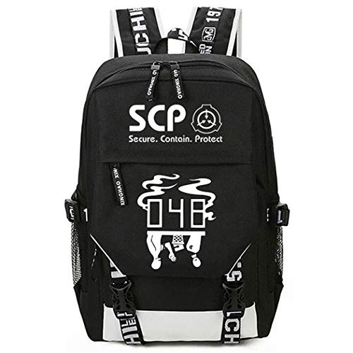 WANHONGYUE SCP Anime Étudiant Sac à Dos Sac d'école Laptop Backpack avec Port de Charge USB Noir / 4