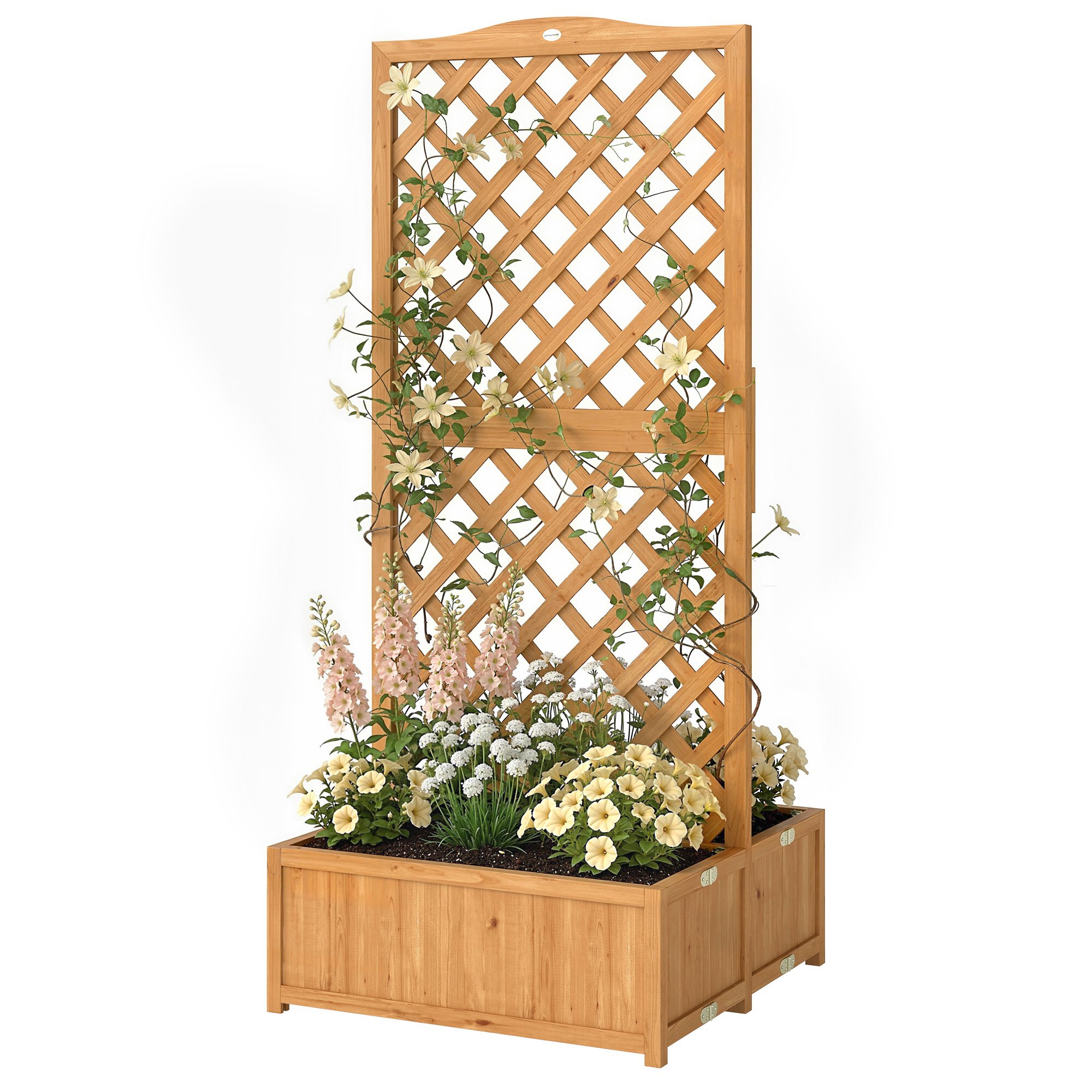 Jardinières en bois Outsunny avec treillis pour plantes grimpantes, plates-bandes surélevées pour jardin ou terrasse, bacs à fleurs d'extérieur pour légumes, fleurs, herbes aromatiques, teinte