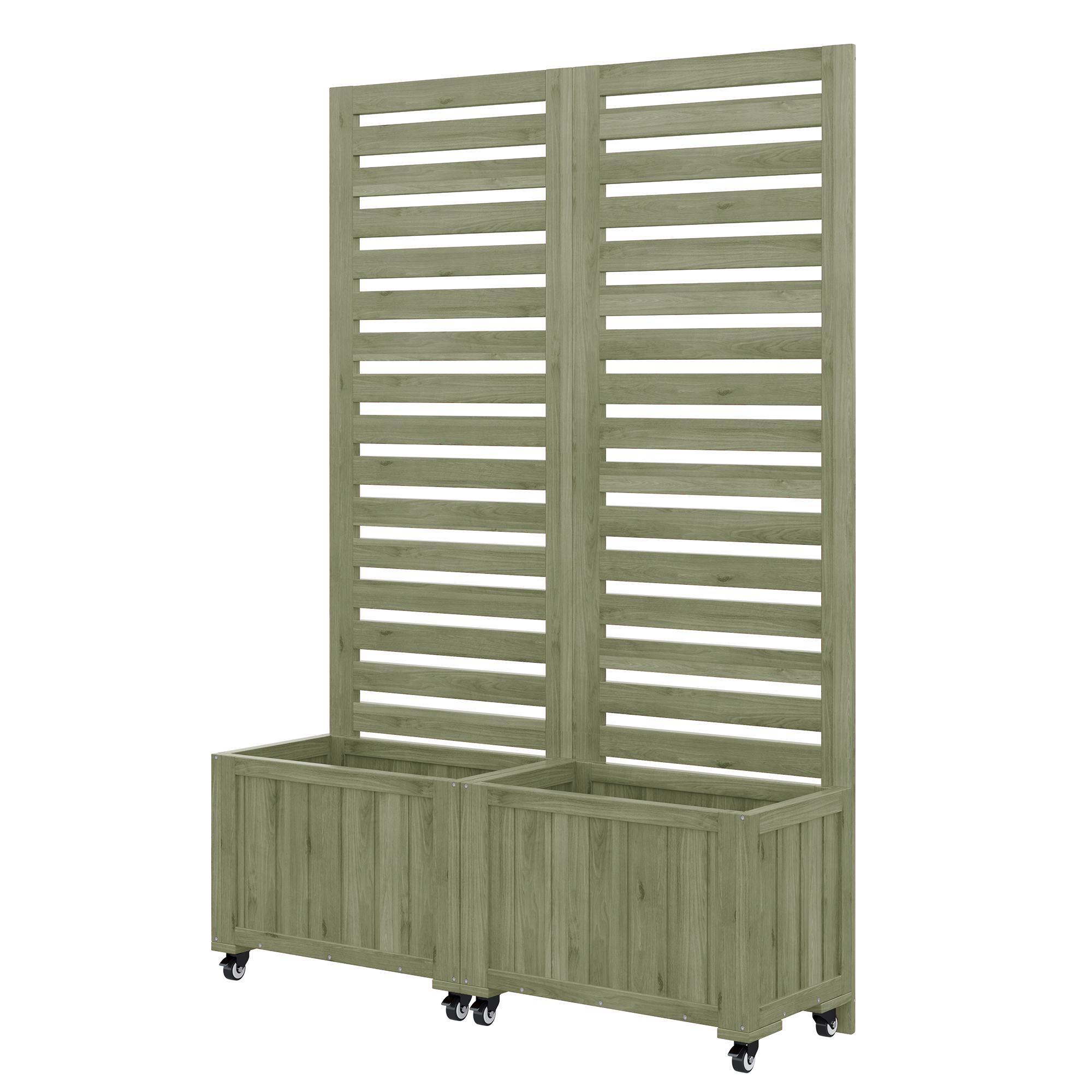 Jardinière extérieur en sapin avec treillis, 2 bacs et roulettes, vert - pour plantes grimpantes, jardin, terrasse