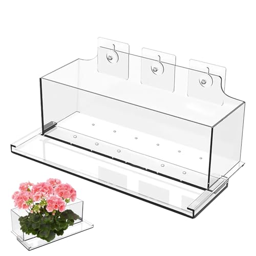 Pots avec : pots de fleurs transparents pour rebord de fenêtre, bacs de jardin auto-adhésifs modernes, plateaux avec trous de drainage | Décoration suspendue sans perçage, cuisine,