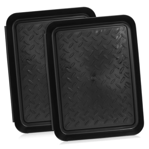 TOBBOMEY Plateaux à Chaussures Imperméables en Caoutchouc Noir, Lot de 2 pour Entrée et Jardin, Bacs de Rangement Polyvalents Légers et Antidérapants, Protection Sol Facile à Nettoyer