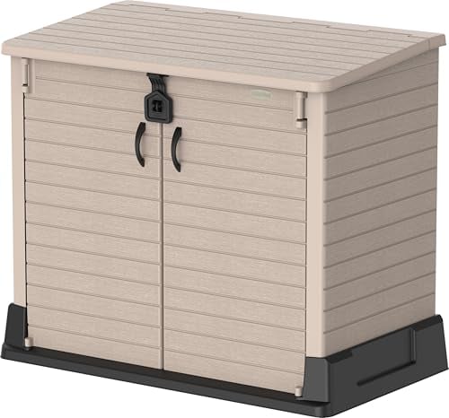 Duramax StoreAway 850L Abri de Jardin Extérieur en Plastique, Coffre de Rangement pour Outils et Barbecues, Cache-Poubelles pour 2 Bacs Roulants, Résistant aux Intempéries, 130x74x110 cm, Taupe Chaud
