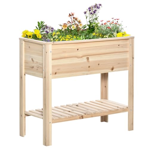 Outsunny Jardinière sur Pieds, carré Potager de Jardin sur Pieds avec 2 Trous de Drainage, Potager surélevé en Bois pour Fleurs, Herbes, légumes, 100 x 30 x 70,5 cm, Bois Naturel