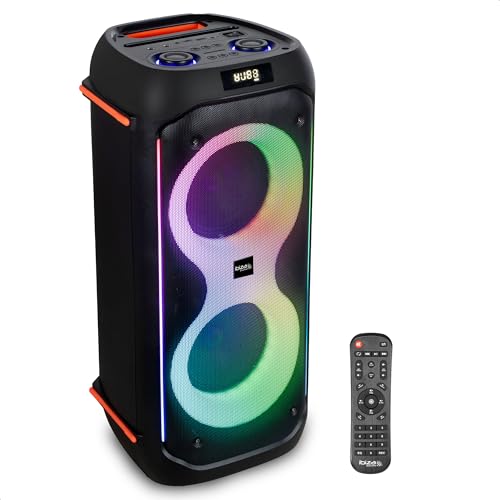 Ibiza - COLUMBA800 - Enceinte, Baffle Puissant de 2x8”/20cm sur Batterie Rechargeable - Bluetooth, Micro-SD, USB, Aux, 2 MIC in, 1 GT in, RCA Out - TWS - LED Infini Multicolore - Poignée