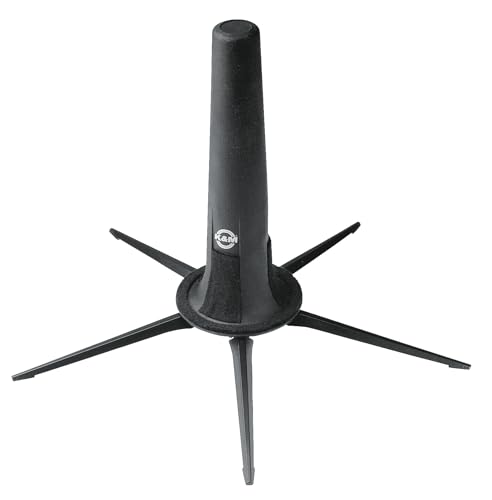 K&M 15290 Pied de saxophone soprano Noir Plastique avec revêtement en feutre - Pieds à vis - Transport possible dans le baffle