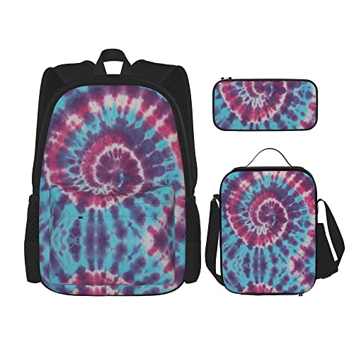 IUBBKI Ensembles de sac à dos scolaire 3 pièces Teens Studentss (Tie Dye) Book Bag + Lunch Bag + Trousse à crayons Cute Sackpack College Work Gym Randonnée Pêche Sac d'ordinateur