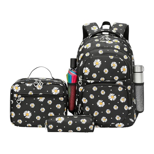 Générique Floral Print Backpack Set – School Bag Lunch Bag Pencil Case | Durable Nylon Polyester Material Stylish Lightweight Travel Bookbag for Elementary Middle High School Boys Girls Teens Youth