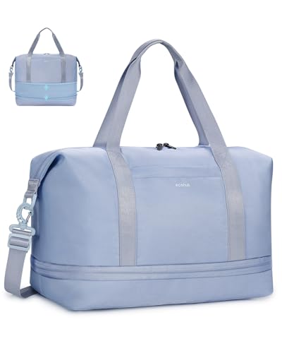 ECOHUB Extensible Sac de Voyage Femme, Bagage Cabine 40x30x20, Ryanair Sacs Cabine Avion avec Pochette Humide Amovible, Sac Weekend Maternité, Pet Recyclé Petit Bagage à Main, Bleu Clair, 20L-28L