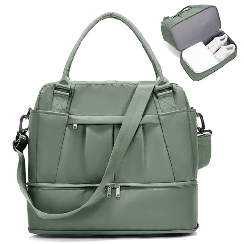 HPLQQ Sac de Voyage Femme, Bagage Cabine 40x30x20 Ryanair, Imperméable Sac fourre-Tout de Sport pour Week-End pour Travel Gym Danse avec Compartiment Chaussures,D3-Vert armée
