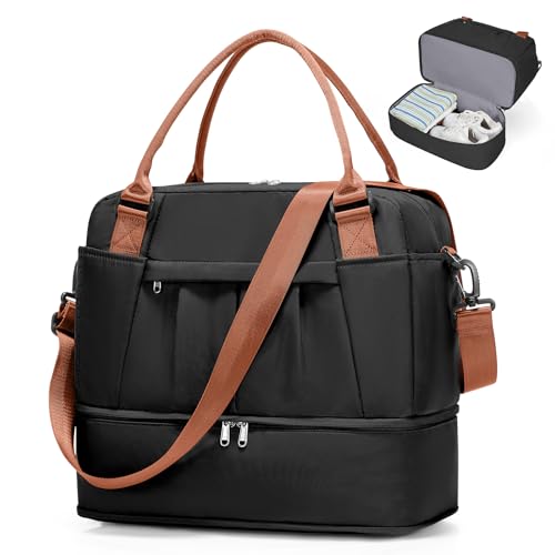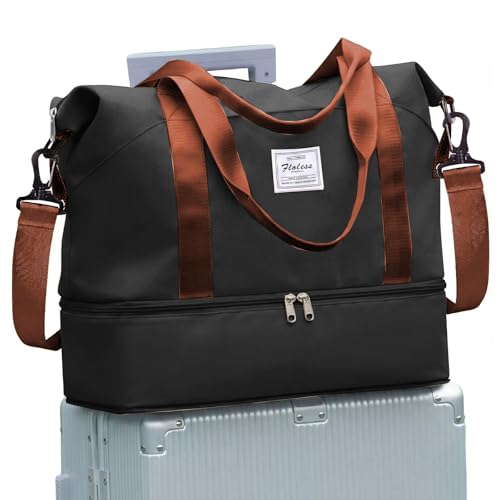 SEAFEW Sac de Voyage Femme Sac fourre-Tout de Sport Imperméable pour Week-End, Cabine Avion Ryanair Bagage Cabine 40x30x20 Easyjet 45x36x20 Extensible pour Travel Gym Danse,J4-Noir-Marron