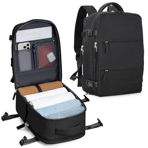 MATEIN Bagage Cabine 40x30x20, Sac a Dos Voyage Cabine Avion Compatible avec Ryanair 40x30x20, Extensible Sac a Dos 30L, Imperméable Bagage a Main Femme Homme pour Scolaires Loisirs Travail, Noir