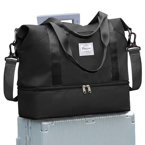 SEAFEW Sac de Voyage Femme Sac fourre-Tout de Sport Imperméable pour Week-End, Cabine Avion Ryanair Bagage Cabine 40x30x20 Easyjet 45x36x20 Extensible pour Travel Gym Danse,J1-Noir