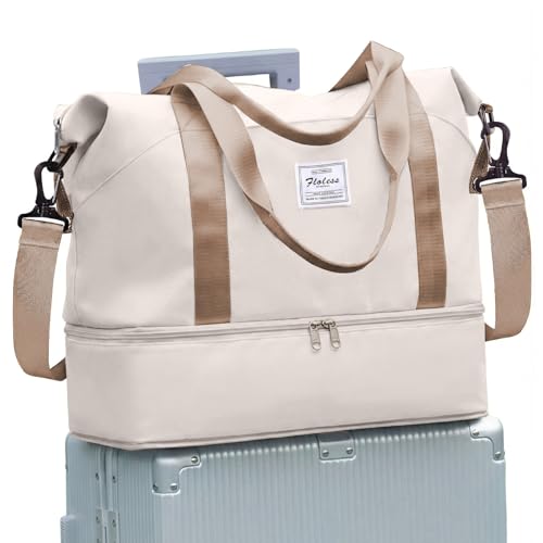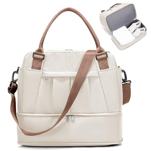 SEAFEW Sac de Voyage Femme Sac fourre-Tout de Sport Imperméable pour Week-End, Cabine Avion Ryanair Bagage Cabine 40x30x20 Easyjet 45x36x20 Extensible pour Travel Gym Danse,B5-Beige