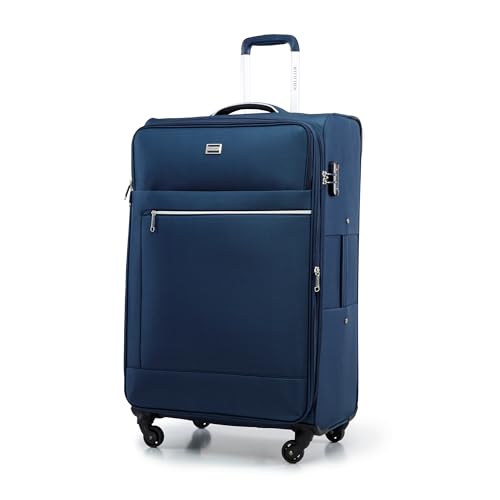 WITTCHEN Valise Cabine Bagages Cabine Valise de Voyage Bagage à Main Valise Rigide en Polyester avec 4 roulettes Pivotantes Serrure à Combinaison Poignée Télescopique Mira Line Taille M Bleu Marine