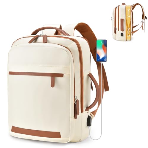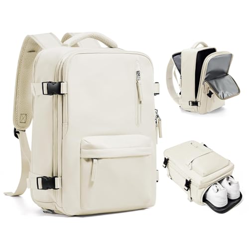 LYNXCHER Sac a Dos Voyage Cabine Avion 45x36x20 pour easyjet Bagage Cabine Sac à Dos Voyage 30 L Bagage à Main pour Femme Homme Ordinateur Portable 15.6 Pouces(Blanc Cassé,M)