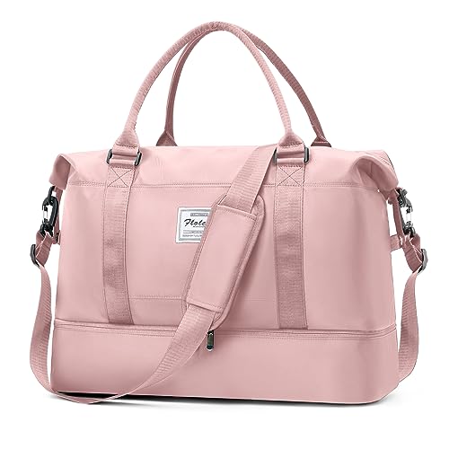 HPLQQ Sac de Voyage Femme avec Compartiment Chaussures, Sac fourre-Tout de Sport pour Week-End Imperméable Cabine Avion Bagage Cabine pour Travel Gym Danse 50L,A07-Rose