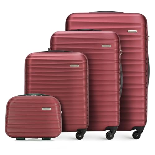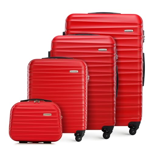WITTCHEN Valise de Voyage Set de 4 valises Valise à roulettes Bagages à Main ABS 4 roulettes pivotantes Serrure à Combinaison Poignée télescopique Groove Line Rouge Air France/Easyjet/Ryanair
