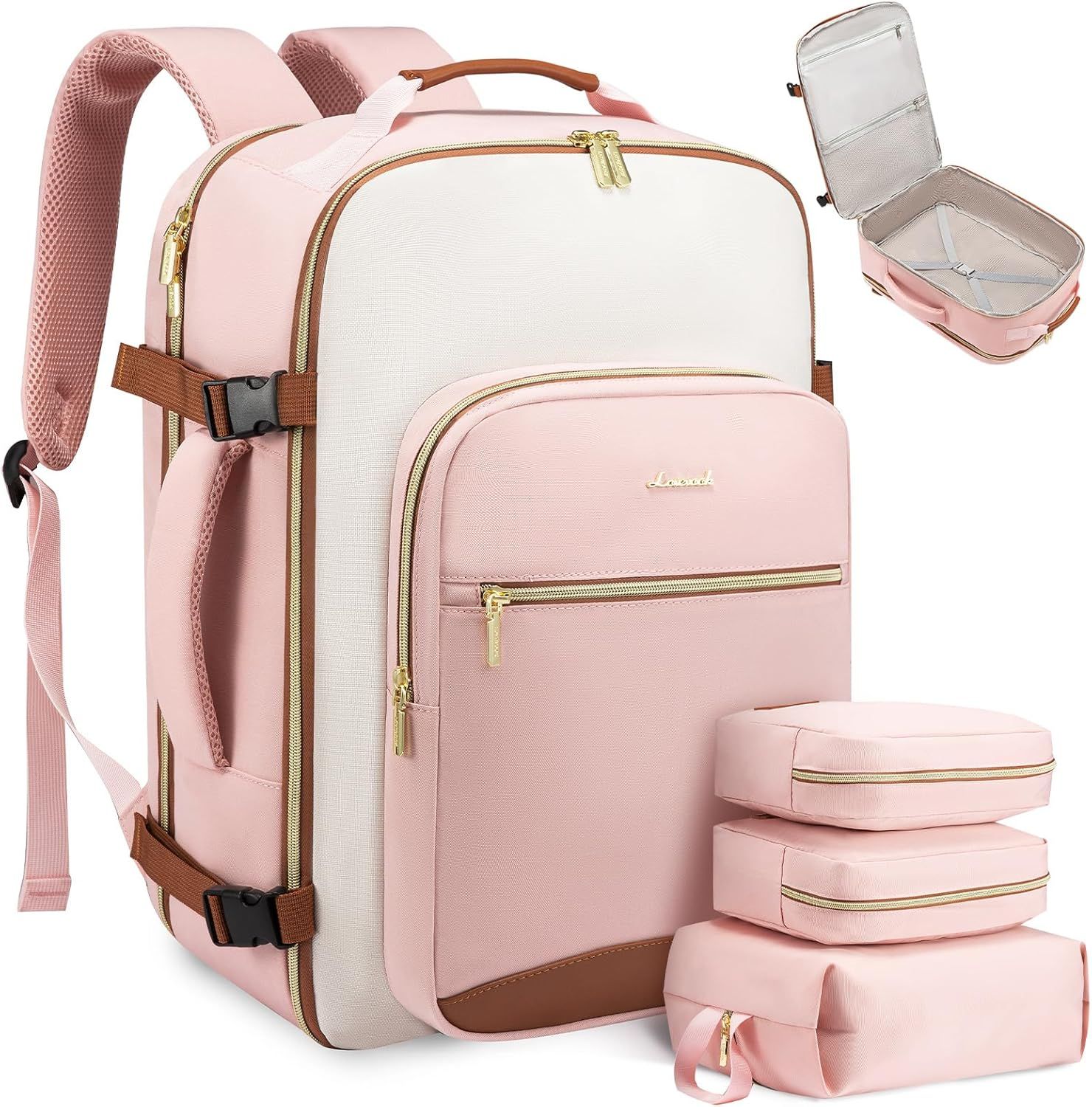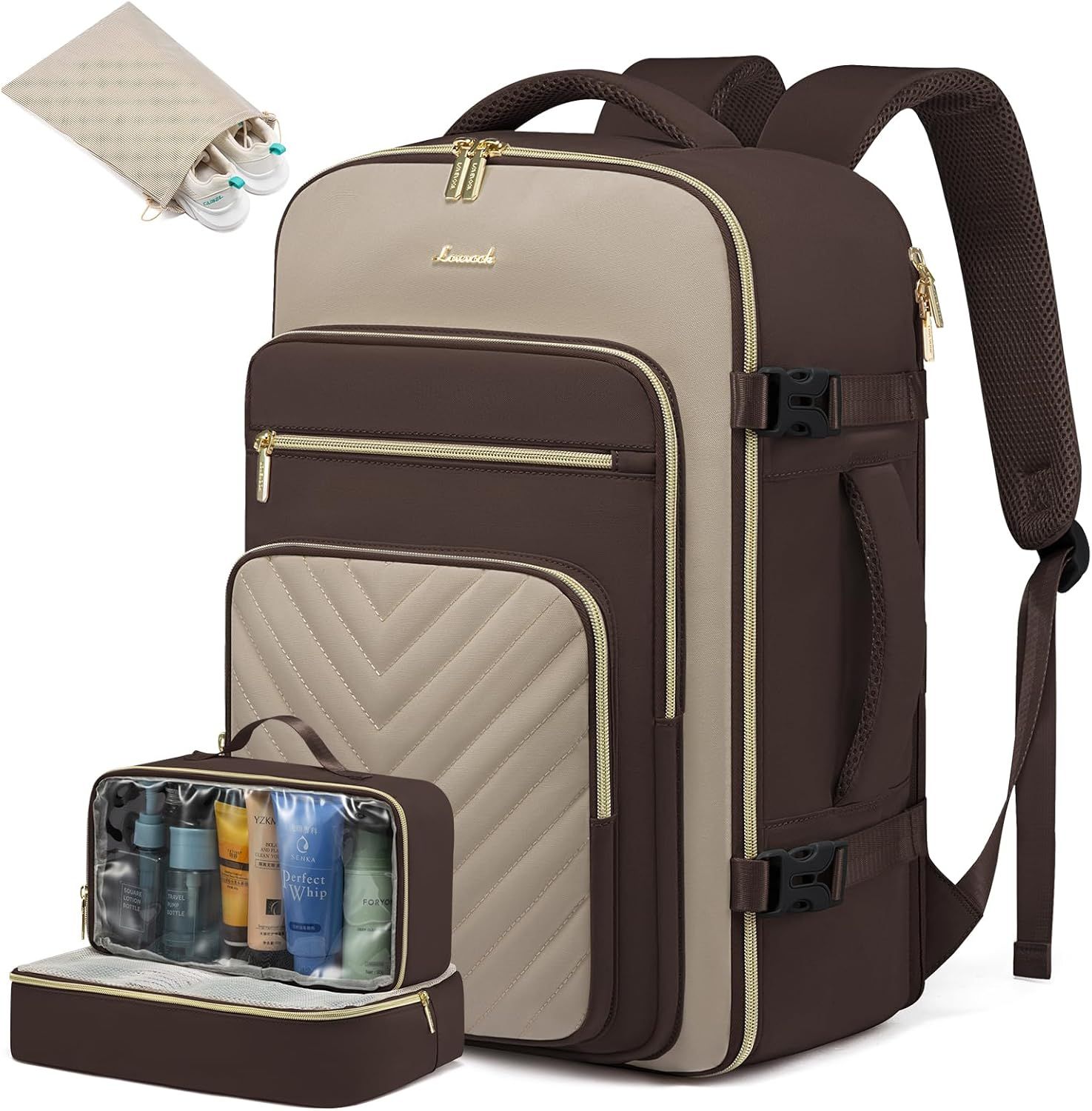 LOVEVOOK Sac à Dos Voyage Femme, 30L Sac a Dos Cabine Avion Bagages Backpack Travel Ryanair, Imperméable Sac Ordinateur Portable 15,6 Pouces Sac a Dos Valise de Randonnée Affaires Travail Beige