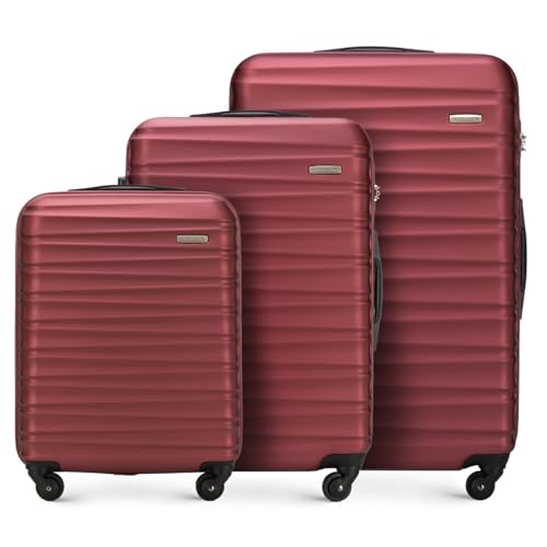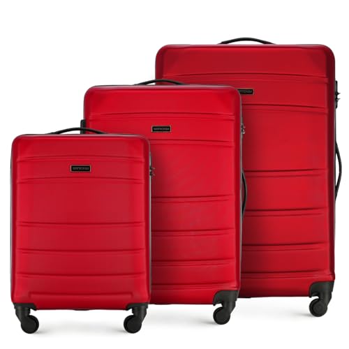 WITTCHEN Valise de Voyage Set de 3 valises Valise à roulettes Bagages à Main ABS 4 roulettes pivotantes Serrure à Combinaison Poignée télescopique Groove Line Rouge Air France/Easyjet/Ryanair