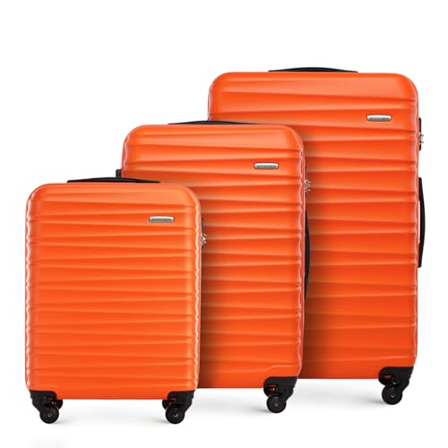 WITTCHEN Valise de Voyage Set de 3 valises Valise à roulettes Bagages à Main ABS 4 roulettes pivotantes Serrure à Combinaison Poignée télescopique Groove Line Orange Air France/Easyjet/Ryanair