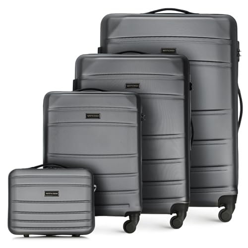 WITTCHEN Valise de Voyage Set de 4 valises Bagages à Main Trousse de Toilette ABS 4 roulettes pivotantes Serrure à Combinaison Poignée télescopique Globe Line Gris Air France/Easyjet/Ryanair