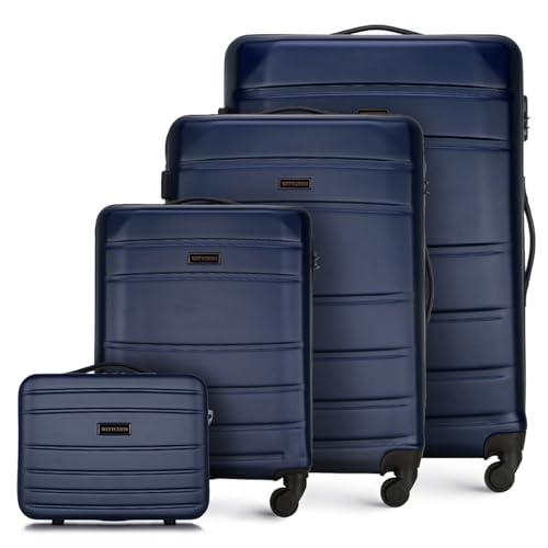 WITTCHEN Valise de Voyage Set de 4 valises Bagages à Main Trousse de Toilette ABS 4 roulettes pivotantes Serrure à Combinaison Poignée télescopique Globe Line Bleu Marine Air France/Easyjet/Ryanair
