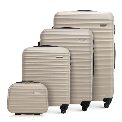 WITTCHEN Valise de Voyage Set de 4 valises Valise à roulettes Bagages à Main ABS 4 roulettes pivotantes Serrure à Combinaison Poignée télescopique Groove Line Beige Air France/Easyjet/Ryanair