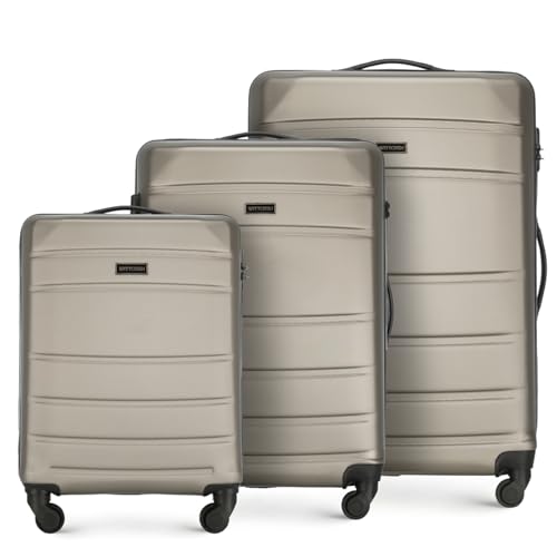 WITTCHEN Valise de Voyage Set de 3 valises Valise à roulettes Bagages à Main ABS 4 roulettes pivotantes Serrure à Combinaison Poignée télescopique Groove Line Beige Air France/Easyjet/Ryanair