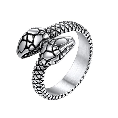 U7 57mm Vintage Bague Argent Homme en Acier Inoxydable Anneaux de Tête de Serpent Bijoux Cadeau pour Hommes Femmes