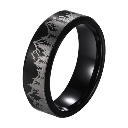JewelryWe Bague Homme Acier Tungstene: Bague Acier inoxydable Noir Forêt Simple Classique - Cadeau Homme Anniversaire St Valentin