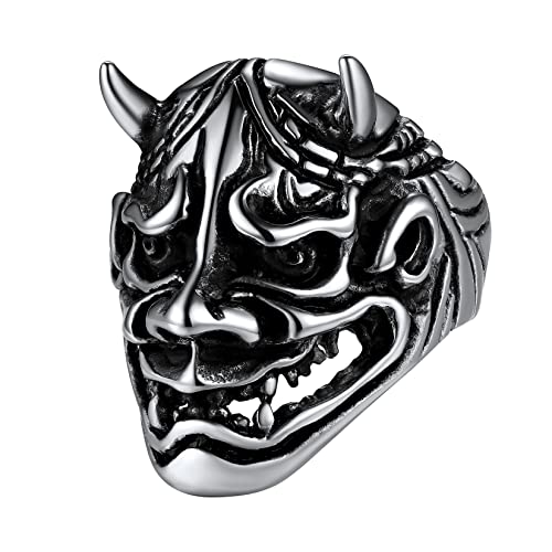 U7 Bague Homme Hannya Acier Inoxydable Taille 62, Anneau Démon Japonais