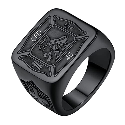 U7 Chevalière Saint Florian Archange Bague Homme Noir en Acier Taille 67