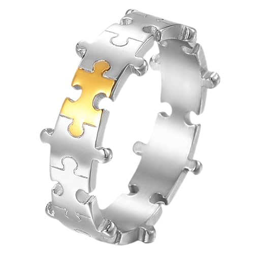 JewelryWe Bague Couple Amoureux :Bague Femme Homme Acier Inoxydable Puzzle-Bague St Valentin Fantaisie,Cadeau Femme Homme