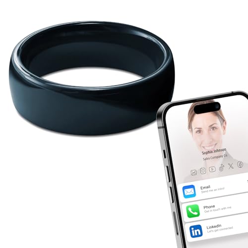 Generic Ntag215 NFC Bague intelligente en céramique compatible avec les téléphones et appareils compatibles NFC programmable 504 octets par étiquette d'entreprise applicable à iOS et Android (noir, US