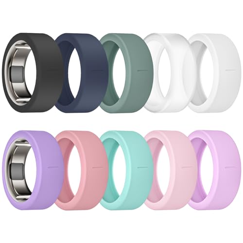 sylacor Lot de 10 coques de protection en silicone élastique anti-rayures pour bague Oura Gen 4/céramique pour homme et femme (10 couleurs-4, taille S (6/7/8/9/10))