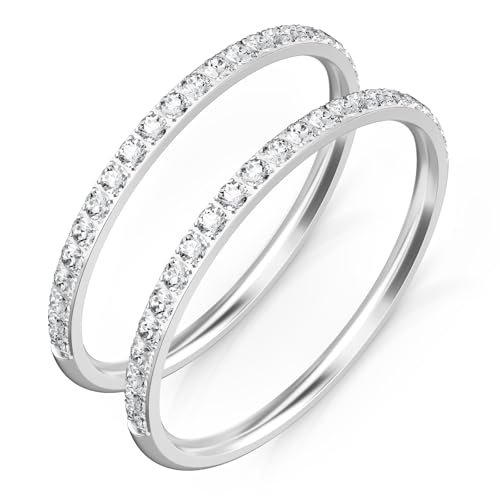 Emibele 3 Pack de bagues empilables en argent pour Oura Ring Gen 3/Oura Ring Gen 4, bague empilable en acier inoxydable, bagues empilables en zircon cubique, cadeaux bijoux pour les femmes, Taille 8