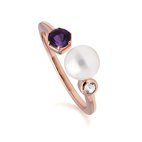 Bague ouverte moderne en argent sterling plaqué or avec perle, saphir et topaze, Pierre, Perle créée