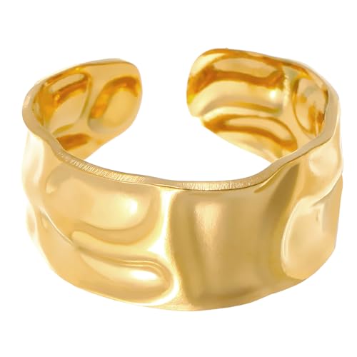 BelleFlair Bague pour femme, bague ajustable pour le pouce au design original, large bijou ouvert en acier inoxydable, résistante à l'eau, aspect épais et enveloppant (Gold)