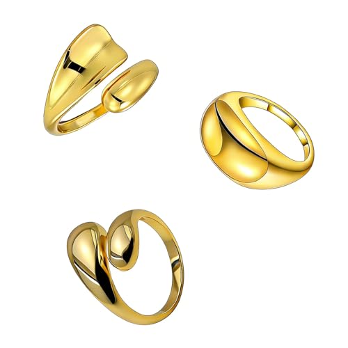 VOOSFSIE 3 Pcs Bague Femme Acier Inoxydable Bague Ensembles de Bagues Réglables Empilables en or 14K pour les Articulations et le Pouce pour Fille