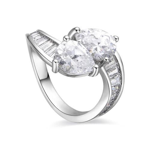 Uloveido Vert Strass Branche Arbre Feuille Bague, Ovale Coupe Zircon cubique Pierre de Naissance bagues de fiançailles (Taille 59,5) PJ100