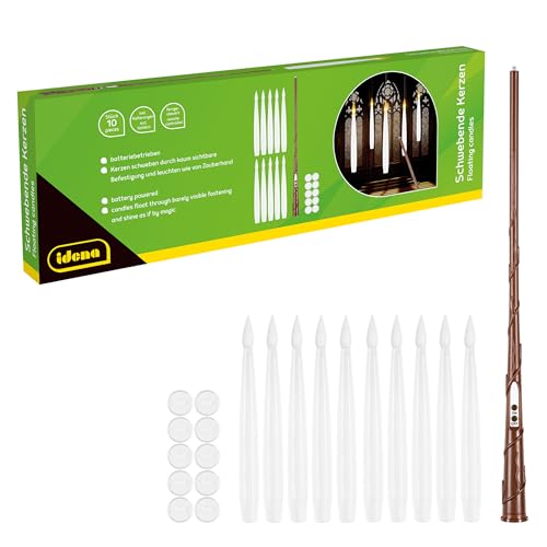 Idena 31874-10 bougies flottantes avec télécommande baguette magique, lumière LED en blanc chaud, fonctionne sur piles (11x AAA non incluses), 10 supports et fil nylon inclus