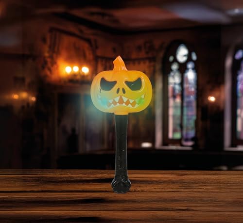 FIESTAS GUIRCA | Baguette Magique Citrouille LED (22 cm) - Décoration d'Halloween et Fêtes de Squelettes - Idéal pour Trick or Treat et Célébrations à Thème - Jouet Lumineux - Orange et Noir